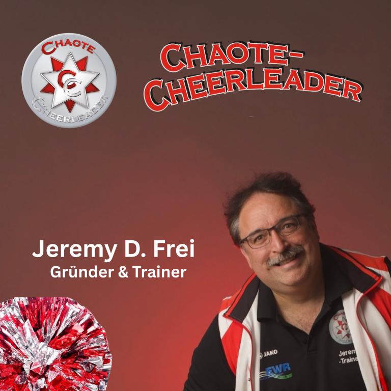 Jeremy gründete die CHAOTE-CHEERLEADER und trainiert seitdem, mit Unterstützung seines Trainerteams, alle Altersklassen mit Leidenschaft, Humor und einem Händchen für Showmomente, die man so schnell nicht vergisst.
